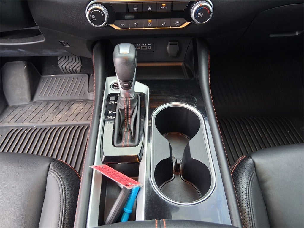 CVT with Xtronic, 4-Wheel Disc Brakes, 6 Speakers, ABS brakes, Air Conditioning, Alloy wheels, AM/FM radio: SiriusXM, Auto High-beam Headlights, Blind Spot Warning, Body-Colored Splash Guards, Brake assist, Bumpers: body-color, Delay-off headlights, Driver door bin, Driver vanity mirror, Dual front impact airbags, Dual front side impact airbags, Electronic Stability Control, Four wheel independent suspension, Front anti-roll bar, Front Bucket Seats, Front Center Armrest, Front reading lights, Fully automatic headlights, Illuminated entry, Knee airbag, Leather Shift Knob, Low tire pressure warning, NissanConnect featuring Apple CarPlay, Occupant sensing airbag, Outside temperature display, Overhead airbag, Overhead console, Panic alarm, Passenger door bin, Passenger vanity mirror, Power door mirrors, Power driver seat, Power steering, Power windows, Radio data system, Radio: AM/FM Audio System, Rear anti-roll bar, Rear Parking Sensors, Rear reading lights, Rear seat center armrest, Rear side impact airbag, Rear window defroster, Remote keyless entry, Security system, Speed control, Speed-sensing steering, Speed-Sensitive Wipers, Split folding rear seat, Sport Seat Trim, SR Floor Mats/Trunk Mat/Hideaway Nets, Steering wheel mounted audio controls, Tachometer, Telescoping steering wheel, Tilt steering wheel, Traction control, Trip computer, Trunk Organizer Tray, Unique Sport Seats, Variably intermittent wipers, Wheels: 19 Sport Alloy, CVT with Xtronic.