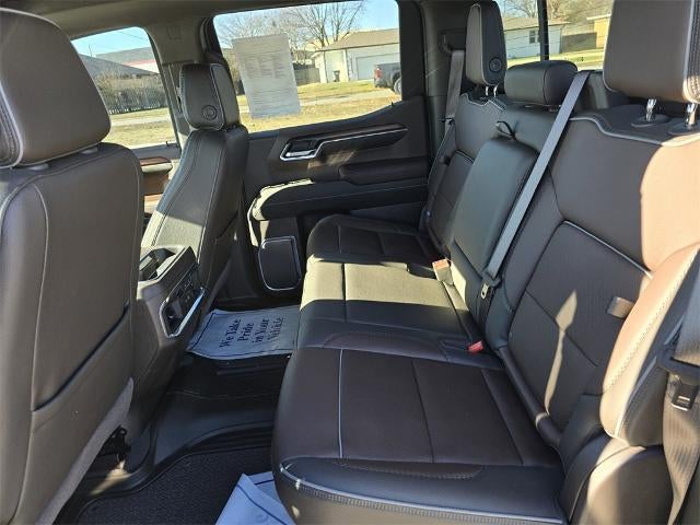 10-Speed Automatic, 4WD, Atmosphere/Brownstone Leather, 12-Way Power Driver Seat Adjuster w/Lumbar, 12-Way Power Passenger Seat Adjuster w/Lumbar, 120-Volt Bed Mounted Power Outlet, 120-Volt Interior Power Outlet, 170 Amp Alternator, 2 Charge/Data USB Ports Inside Center Console, 2 Type-C Charge-Only Rear USB Ports, 2 USB Ports, 3.23 Rear Axle Ratio, 4-Wheel Disc Brakes, 7 Speakers, ABS brakes, Adaptive suspension, Air Conditioning, Alloy wheels, AM/FM radio: SiriusXM with 360L, Apple CarPlay/Android Auto, Auto High-beam Headlights, Auto-dimming door mirrors, Auto-dimming Rear-View mirror, Auto-Locking Rear Differential, Automatic temperature control, Auxiliary External Transmission Oil Cooler, Bed View Camera, Brake assist, Buckle to Drive, Bumpers: body-color, Chrome Header w/Signature Denali Chrome Grille, Chrome Recovery Hooks, Chrome Wheel To Wheel Assist Steps, Color-Keyed Carpeting Floor Covering, Compass, Deep-Tinted Glass, Delay-off headlights, Denali Premium Suspension w/Adaptive Ride Control, Denali Reserve Package, Driver door bin, Driver Memory, Driver vanity mirror, Dual Active Exhaust, Dual front impact airbags, Dual front side impact airbags, Electric Rear-Window Defogger, Electronic Stability Control, Emergency communication system: OnStar, Enhanced Automatic Emergency Braking, Floor-Mounted Center Console, Following Distance Indicator, Forge Perforated Leather Seat Trim, Forward Collision Alert, Front anti-roll bar, Front Bucket Seats, Front Center Armrest, Front dual zone A/C, Front fog lights, Front License Plate Kit, Front Pedestrian Braking, Front Prem Floor Liners w/Removable Carpet Insert, Front Rain-Sensing Wipers, Front reading lights, Front wheel independent suspension, Fully automatic headlights, Garage door transmitter, Genuine wood console insert, Genuine wood dashboard insert, Genuine wood door panel insert, GMC MultiPro Power Steps, HD Surround Vision, Heated 2nd Row Outboard Seats, Heated door mirrors, Heated Driver & Front Outboard Passenger Seating, Heated front seats, Heated rear seats, Heated steering wheel, Heavy-Duty Air Filter, Hill Descent Control, Hitch Guidance, Hitch View, Illuminated entry, In-Vehicle Trailering System App, Integrated Trailer Brake Controller, IntelliBeam Automatic High Beam On/Off, Keyless Open & Start, Lane Keep Assist w/Lane Departure Warning, LED Cargo Area Lighting, Low tire pressure warning, Memory seat, Multicolor 15 Diagonal Head-Up Display, NAVIGATION, Occupant sensing airbag, OnStar Services Capable, Outside temperature display, Overhead airbag, Overhead console, Panic alarm, Passenger door bin, Passenger vanity mirror, Perimeter Lighting, Power Door Locks, Power door mirrors, Power driver seat, Power Front Passenger Windows w/Express Up/Down, Power Front Windows w/Driver Express Up/Down, Power passenger seat, Power Rake & Telescoping Steering Column, Power Rear Windows w/Express Down, Power Sliding Rear Window w/Rear Defogger, Power steering, Power Sunroof, Power windows, Preferred Equipment Group 5SA, Premium Bose 7-Speaker Sound System, Push Button Start, Radio data system, Radio: Premium GMC Infotainment Audio System, Rain sensing wipers, Rear Camera Mirror, Rear Cross Traffic Braking, Rear Pedestrian Detection, Rear Prem Floor Liners w/Removable Carpet Insert, Rear reading lights, Rear seat center armrest, Rear step bumper, Rear Wheelhouse Liners, Rear window defroster, Remote keyless entry, Remote Vehicle Starter System, Safety Alert Seat, Security system, SiriusXM w/360L Trial Subscription, Speed control, Speed-sensing steering, Split folding rear seat, Spray-On Pickup Bedliner w/GMC Logo, Steering Wheel Audio Controls, Steering wheel mounted audio controls, Tachometer, Technology Package, Telescoping steering wheel, Theft Deterrent System (Unauthorized Entry), Tilt steering wheel, Traction control, Trailer Camera Provi